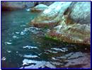 Стоянка прогулочных катеров у причала «Ласточкино гнездо» июль 2004 берег в районе п.Гурзуф