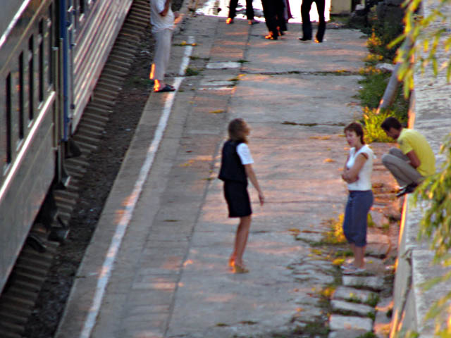 Пассажиры поезда 24 Адлер – Москва. Не запланированная прогулка, во время технической стоянки в Якорной Щели. Техническая стоянка заложена в графике образца 2008 года, под пропуск поездов: 104 Адлер – Москва, 102 Адлер – Москва, и под пропуск нитки Адлер – Волгоград – Саратов.
