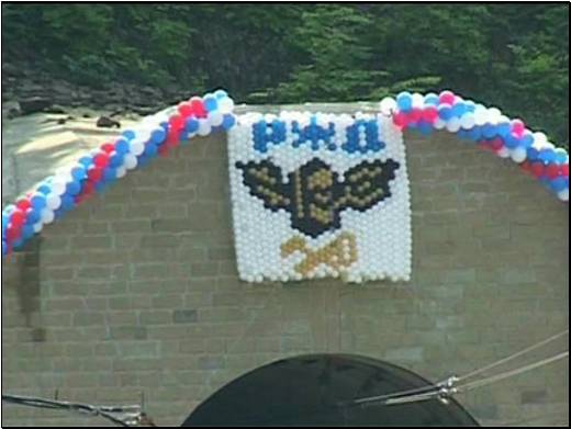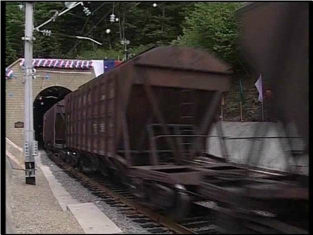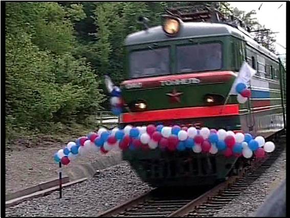 И вот настал момент открытия. Электровоз ВЛ10, перерезает ленточку из надувных шаров.