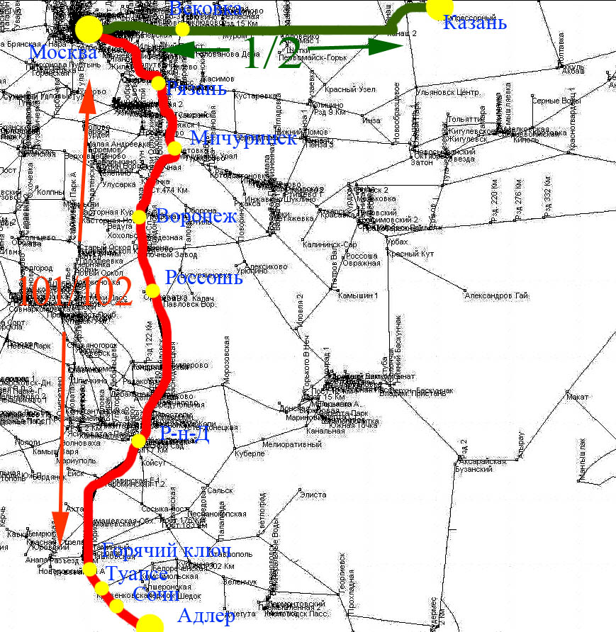 Поезд № 1/2-101/102 Казань – Москва – Адлер. (в общем обороте)