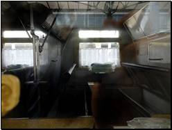 Внутри купе (через стекло). На столе комплект постельного белья БЧ. Бельё примерно такое. |