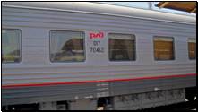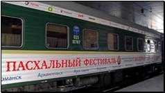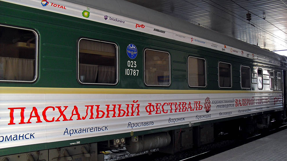 Купейный вагон ТВЗ с эмблемой пасхального фестиваля. |