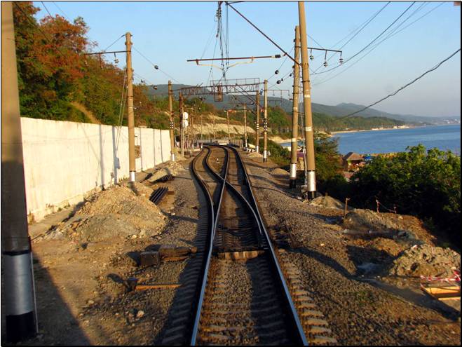 Кое-где ещё идёт строительство и укрепление береговой полосы. Всё это происходит в рамках программы усиления ЖД инфраструктуры Туапсе – Сочи – Адлер.